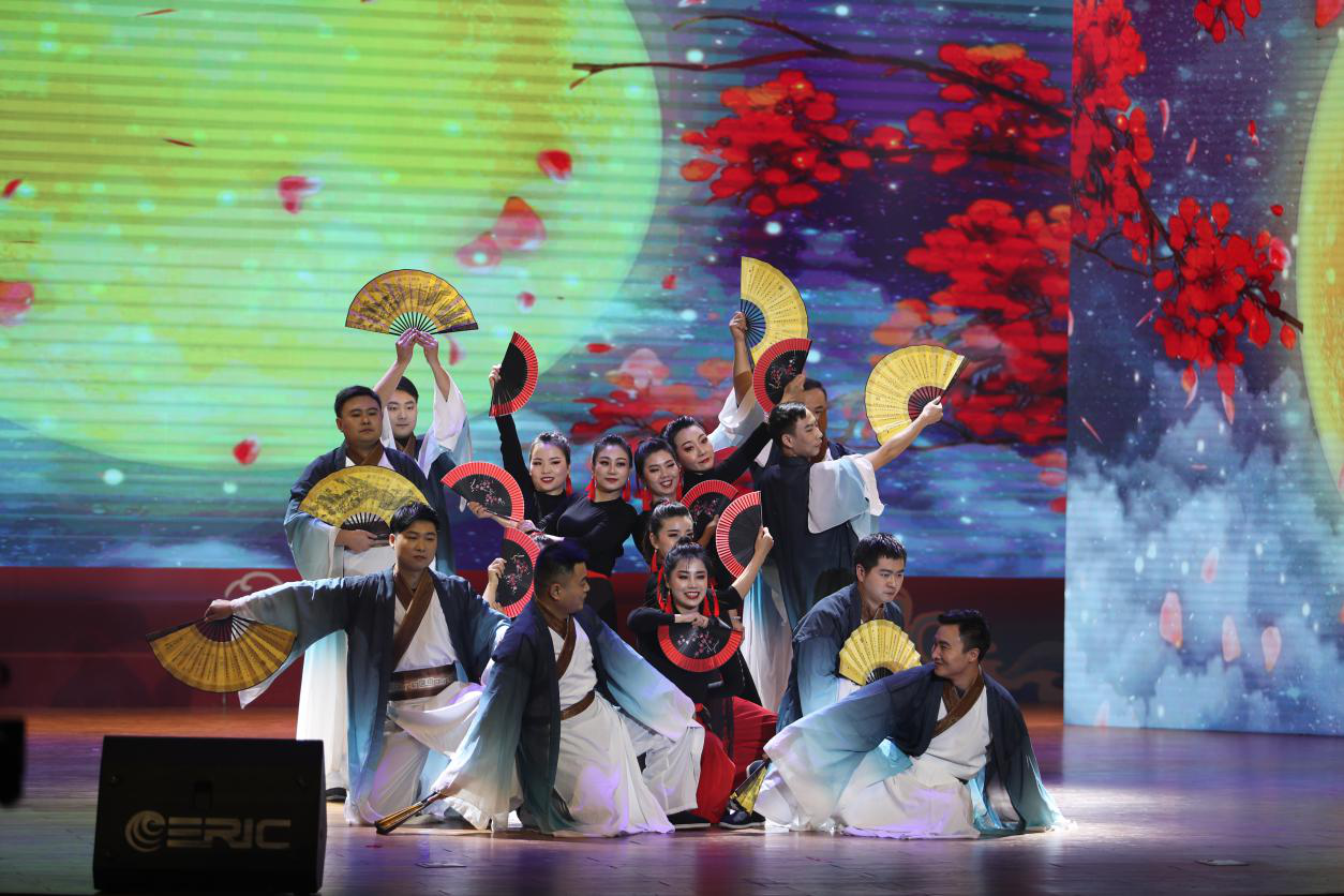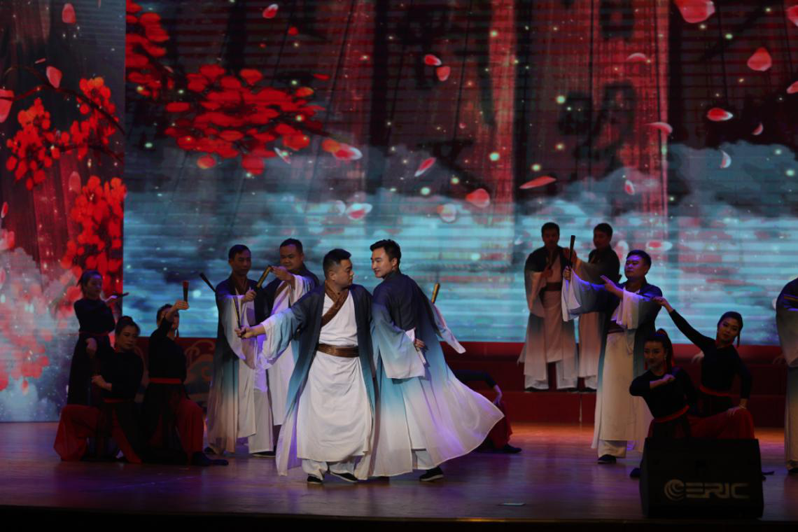隨著音樂響起,“楚國男子”白衣飄飄,手持紙扇,“江南女子”搖曳身姿,執(zhí)扇起舞。公司參加表演的職工在舞臺上大放異彩,為現(xiàn)場和觀看直播的觀眾奉上一場美輪美奐的文化盛宴,既再現(xiàn)了楚國藝術的奇異想象和浪漫色彩,也展現(xiàn)了江南點軍的神秘風情和深遠文化。
