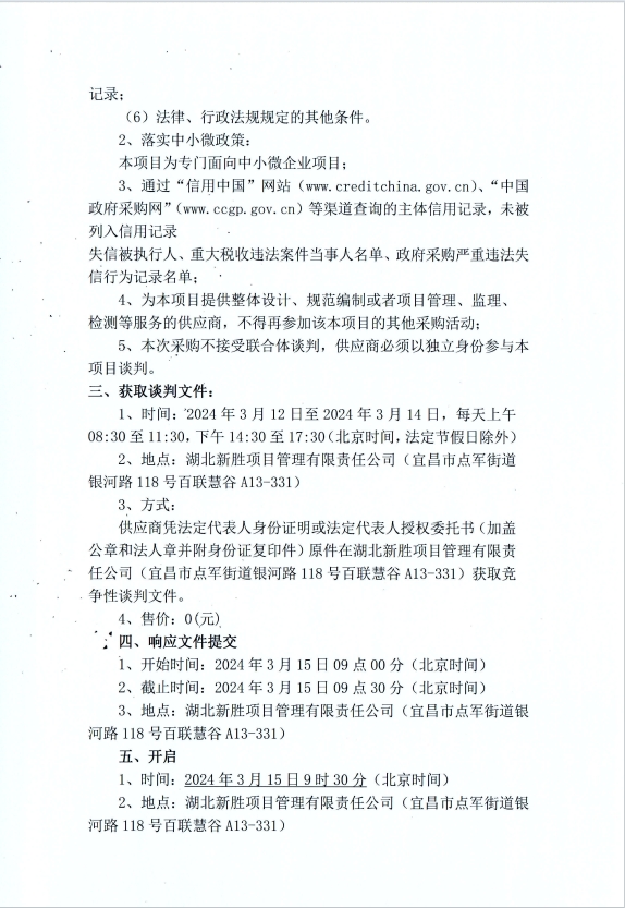 宜昌宜居樂生活服務(wù)有限責(zé)任公司商業(yè)物業(yè)保潔及秩序維護(hù)服務(wù)項目競爭性談判公告