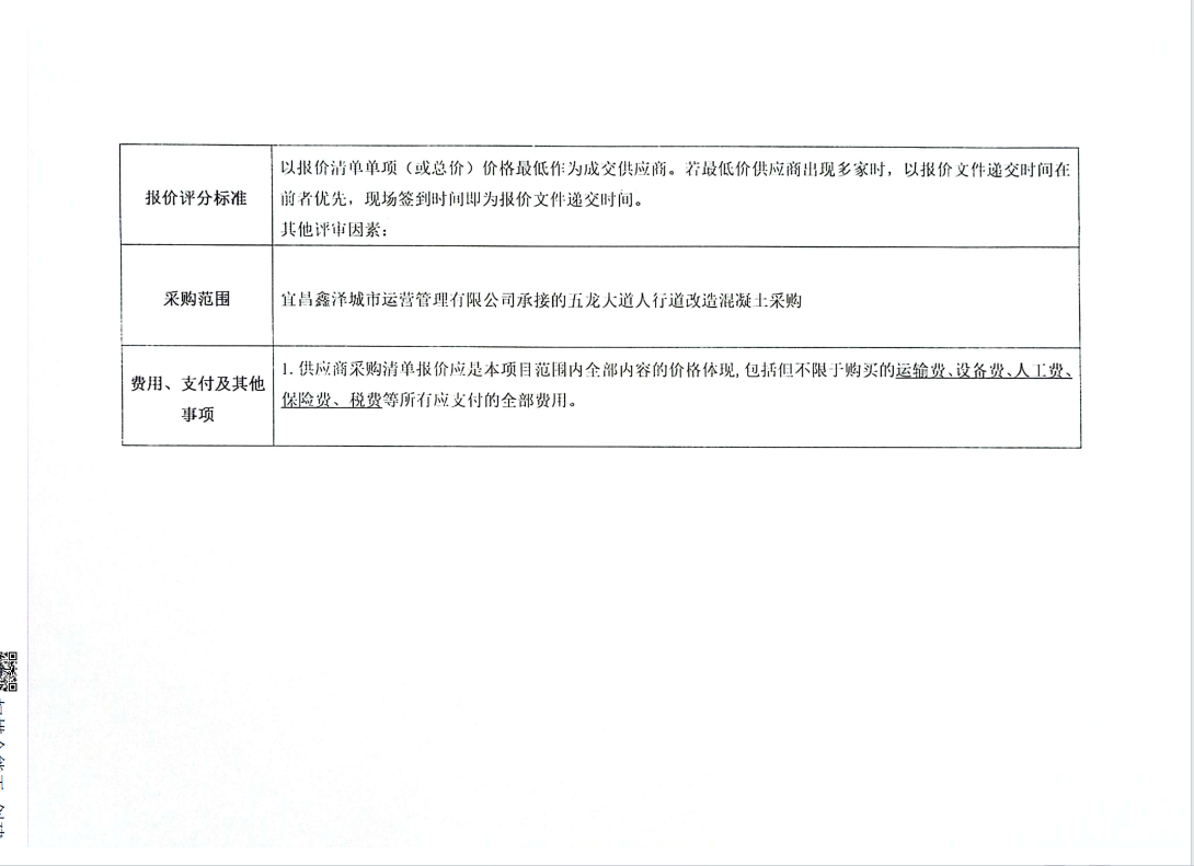 五龍大道人行道改造混凝土采購項(xiàng)目詢價公告