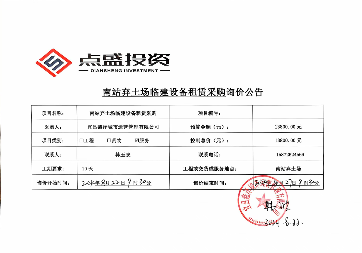 南站路棄土場(chǎng)臨建設(shè)備租賃采購(gòu)項(xiàng)目詢價(jià)公告