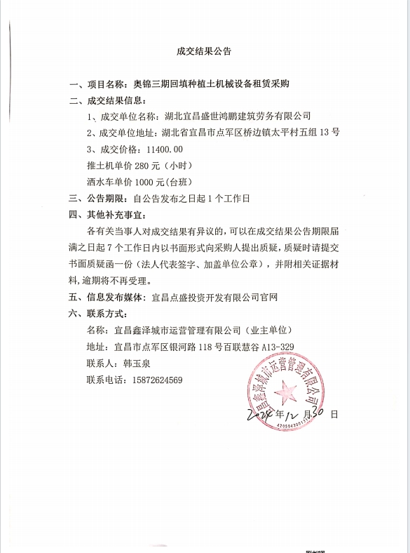奧錦三期種植土回填機(jī)械設(shè)備租賃采購(gòu)成交公告