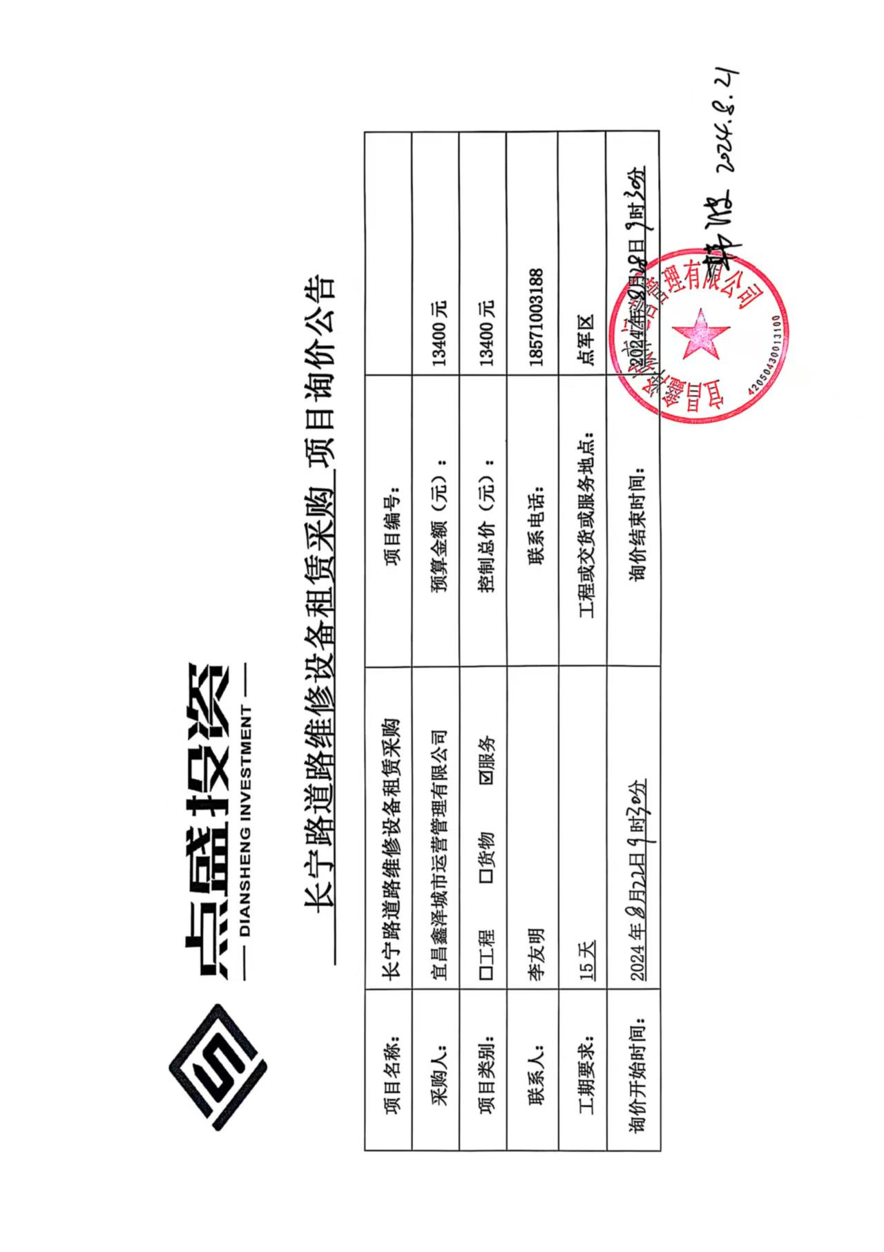 長(zhǎng)寧路道路維修設(shè)備租賃采購(gòu)詢(xún)價(jià)公告